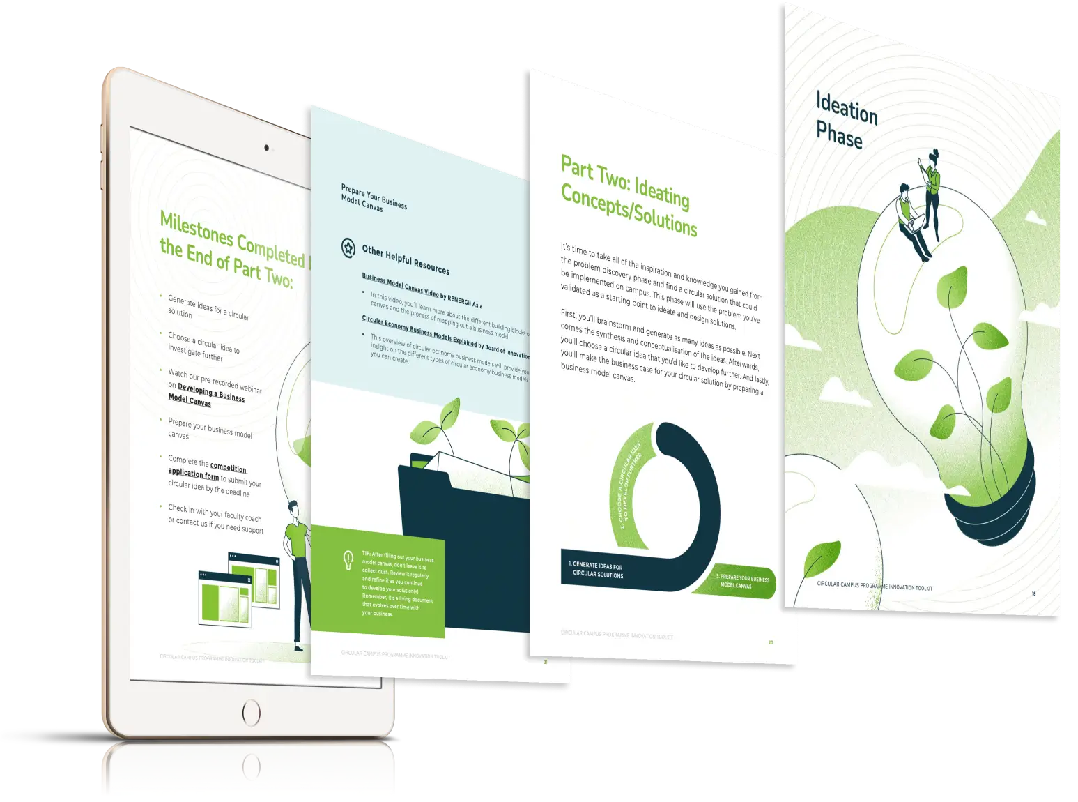 As part of the Circular Campus Program, they needed a toolkit and worksheets for participants. That’s why we decided to make the design clean and easily digestible while being light, fresh, and engaging. A straightforward layout with organic hand-drawn illustrations gave their mission and teachings a sense of approachability despite their lofty goals.